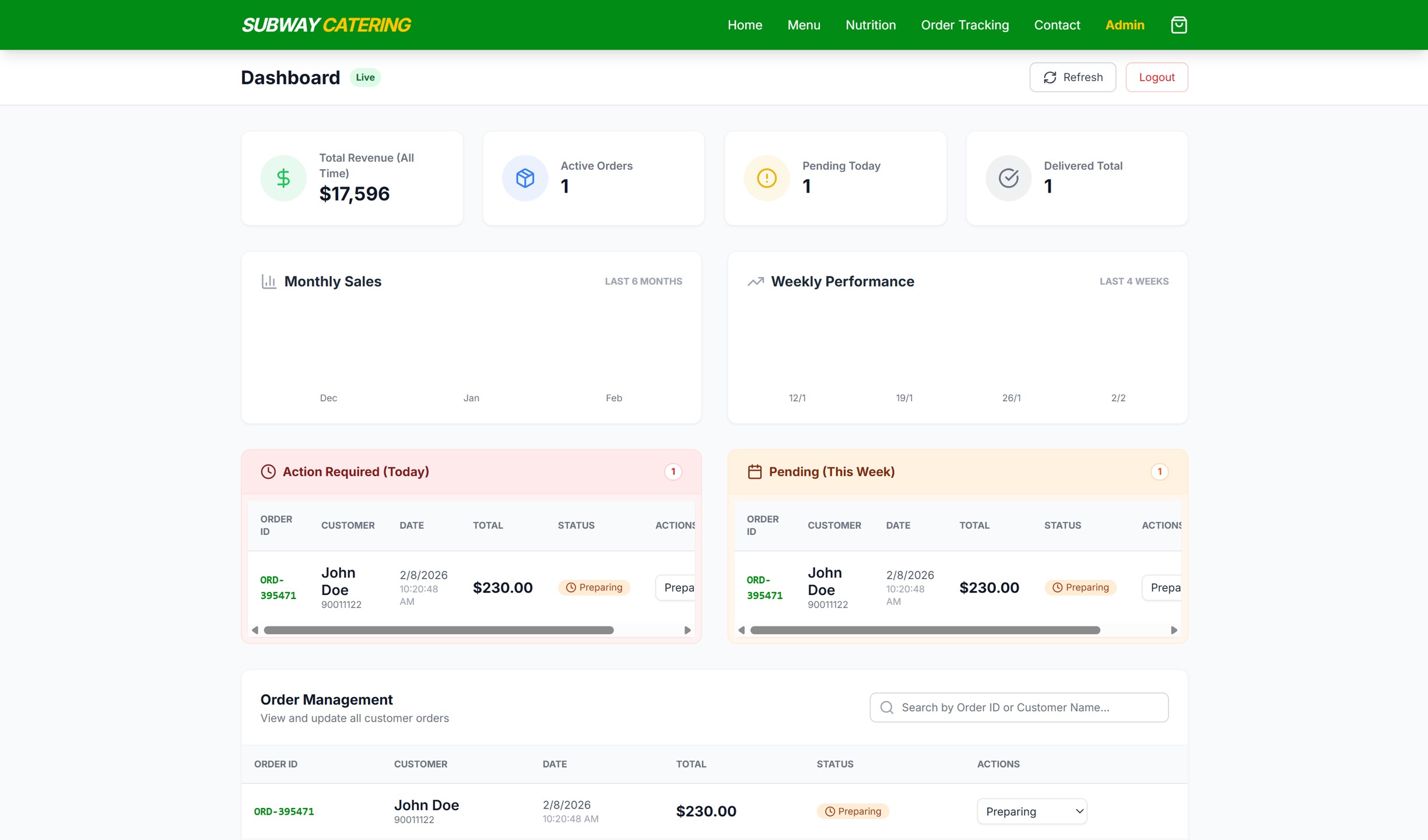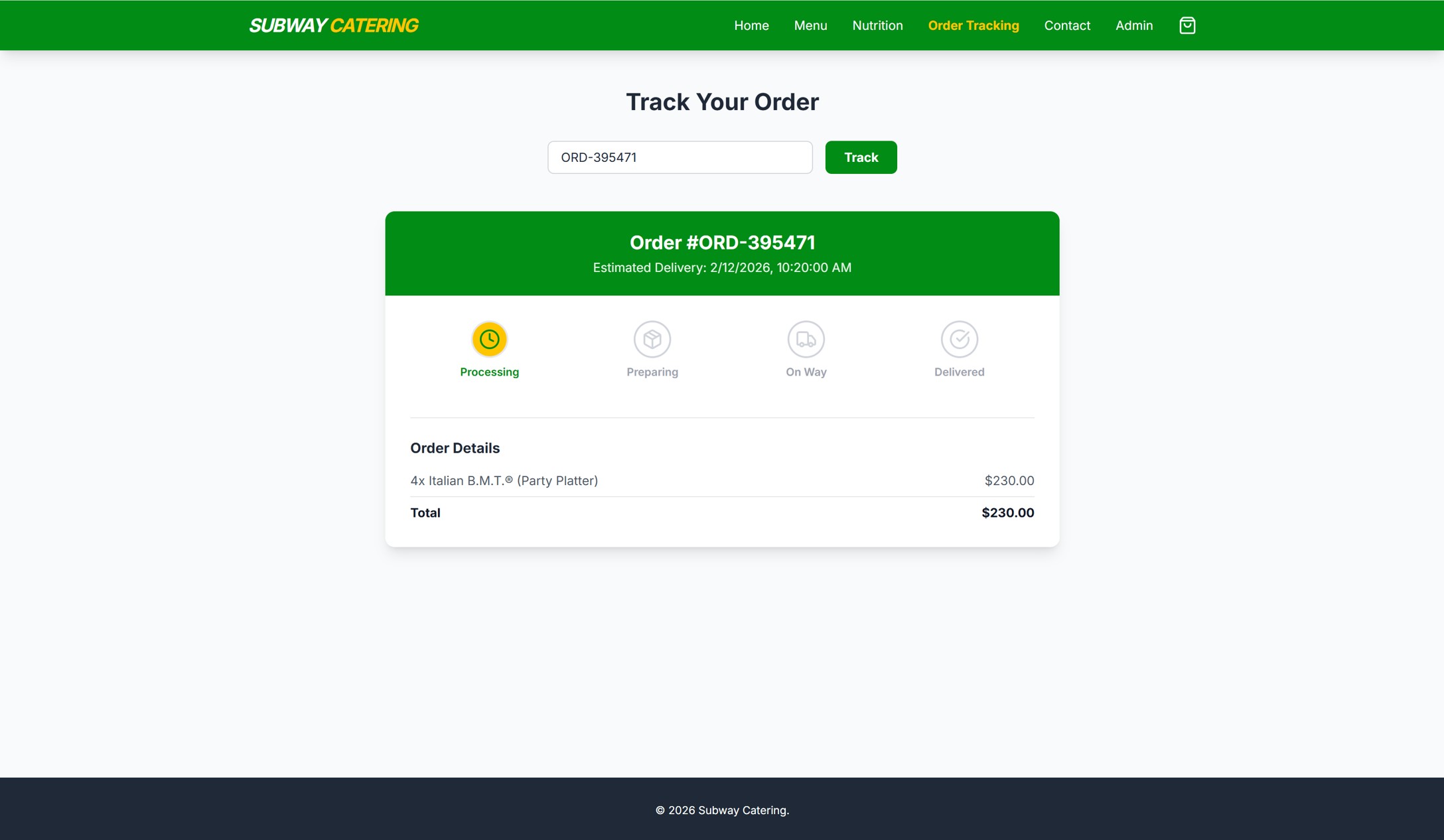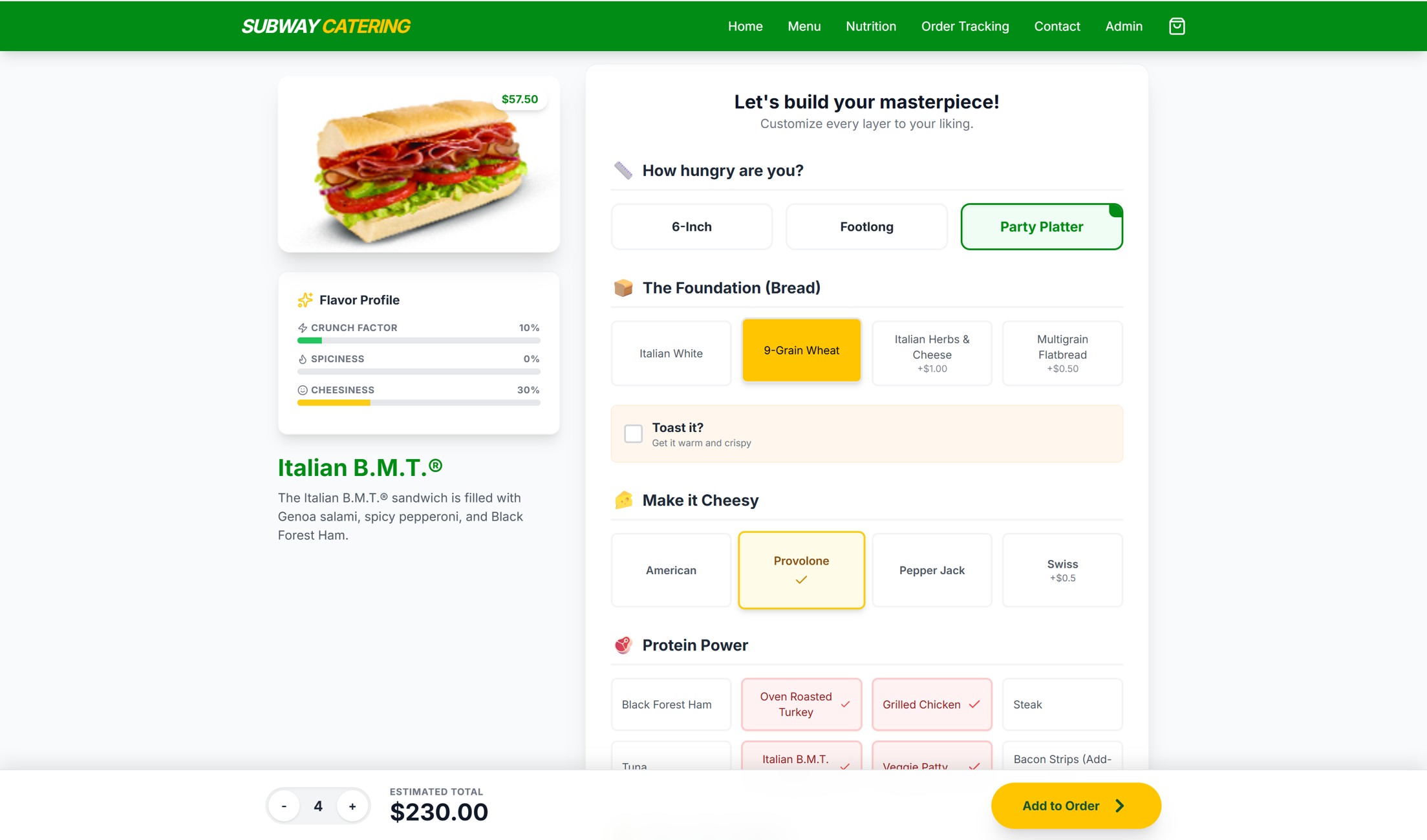 Tasked with facilitating a Subway branch's entry into the catering sector, we designed and implemented a comprehensive digital ecosystem to handle bulk orders. The project centered on a client site that allows users to fully customize sandwich platters and schedule large-scale deliveries through integrated third-party platforms. To support the back-of-house operations, we built a robust administrative dashboard for order tracking and a custom notification bot that alerts staff to upcoming orders throughout the day. This proactive alert system ensured the team could manage inventory and prep ingredients well in advance, minimizing kitchen bottlenecks. The final delivery successfully bridged the gap between customer customization and logistical execution, driving new revenue through a streamlined, end-to-end catering service.
